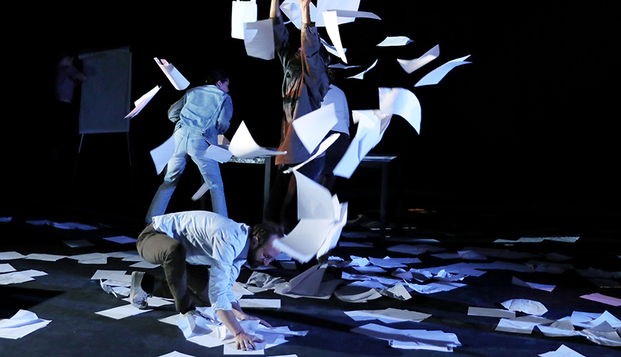 Dans une scénographie grouillante de trouvailles bureautiques et autres, se (re)construit devant nous, avec force humour dans la forme et beaucoup de sérieux dans le fond, l'œuvre de Pierre Bourdieu " La misère du monde ".